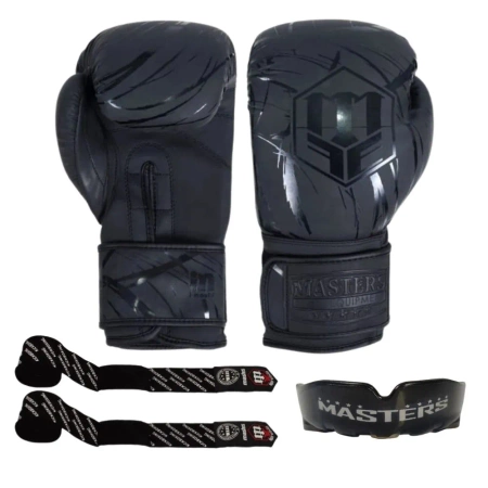 Zestaw treningowy Masters RPU-BLACK to propozycja dla osób, które cenią minimalistyczny styl, wysoką jakość i pełną ochronę podczas treningów. Rękawice z matowej serii, profesjonalny ochraniacz szczęki i elastyczne bandaże tworzą komplet, który sprawdzi się zarówno dla początkujących, jak i zaawansowanych fighterów.
