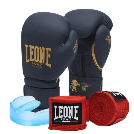 Zestaw treningowy Leone BLUE EDITION to propozycja dla osób, które cenią nowoczesny minimalizm, elegancki wygląd i niezawodną ochronę podczas każdego treningu. Połączenie wysokiej jakości rękawic, funkcjonalnej szczęki bokserskiej i elastycznych bandaży tworzy komplet, który pozwala trenować pewnie i bezpiecznie – od sali bokserskiej po sparingi w kickboxingu.